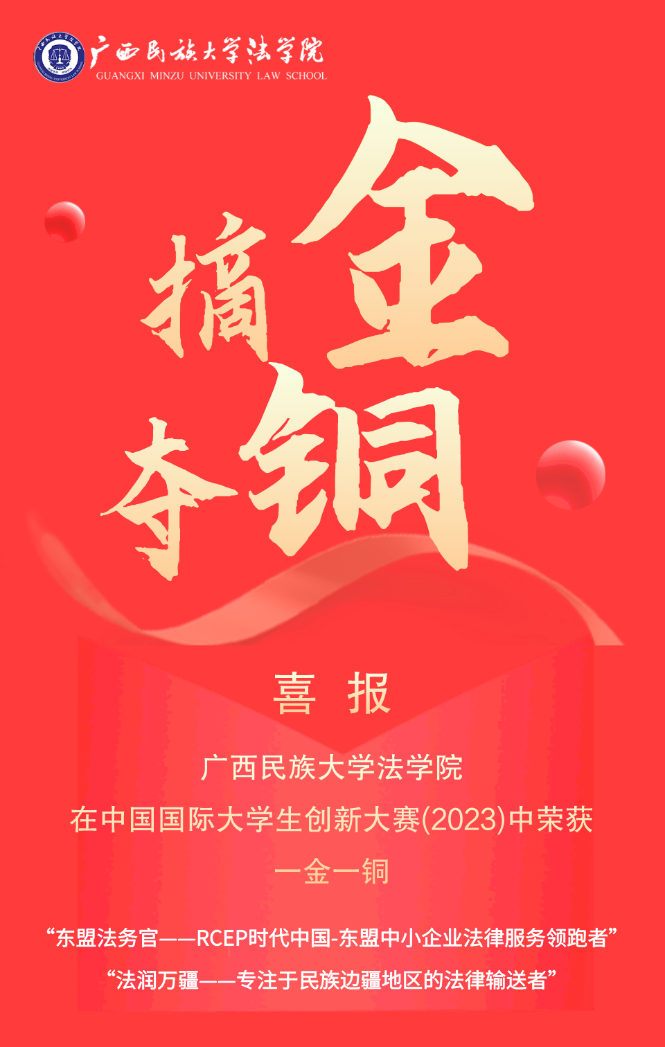 “一金一铜”的优异成绩,是法学院人才培养与双创教育持续发力的结果。未来,法学院将继续打造“法学+”的特色双创教育模式,提升双创工作的指导水平和服务能力,发挥“以赛育才、以赛促用、以赛为媒”力量,挖掘学生潜力,锻炼学生能力,培养适应新时代发展所需的创新型人才。