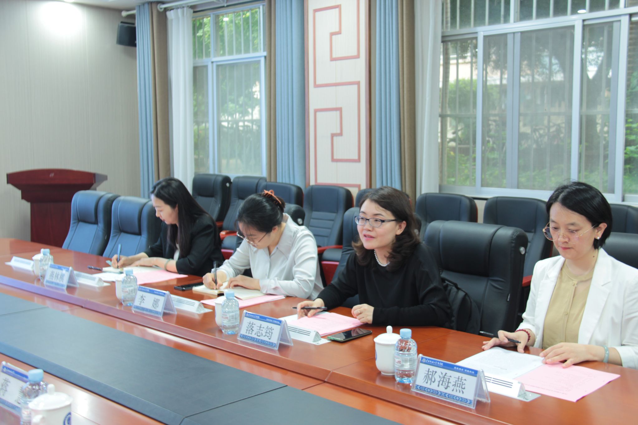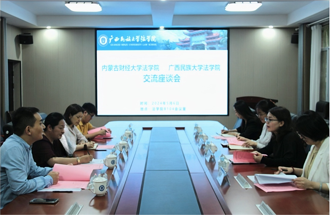 蒋慧代表法学院对内蒙古财经大学法学院教师一行表示欢迎。随后,蒋慧从师资力量、人才培养、学科建设、科研团队建设等方面介绍了学院的整体情况以及学院未来的发展战略和发展目标,重点介绍了学院在东盟法治人才培养方面的主要举措和工作成效。
