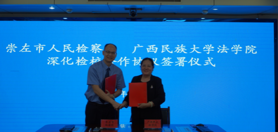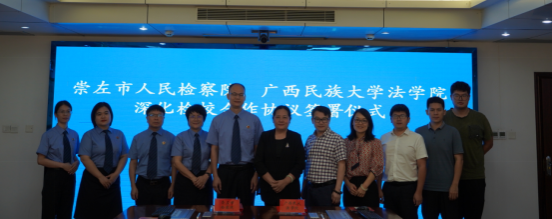 7月10日上午,广西民族大学法学院院长蒋慧一行赴崇左市人民检察院就检校合作事宜进行座谈交流,并签署合作共建协议。