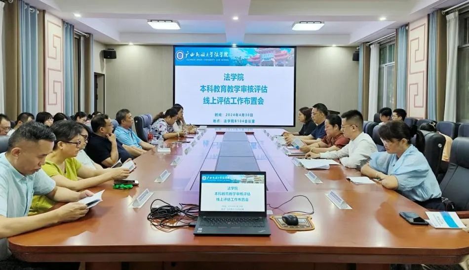 4月30日下午,法学院召开本科教育教学审核评估线上评估工作布置会。学院党委书记黄中显,院长蒋慧,党委副书记玉琳,副院长陈星,全体教职工与会。