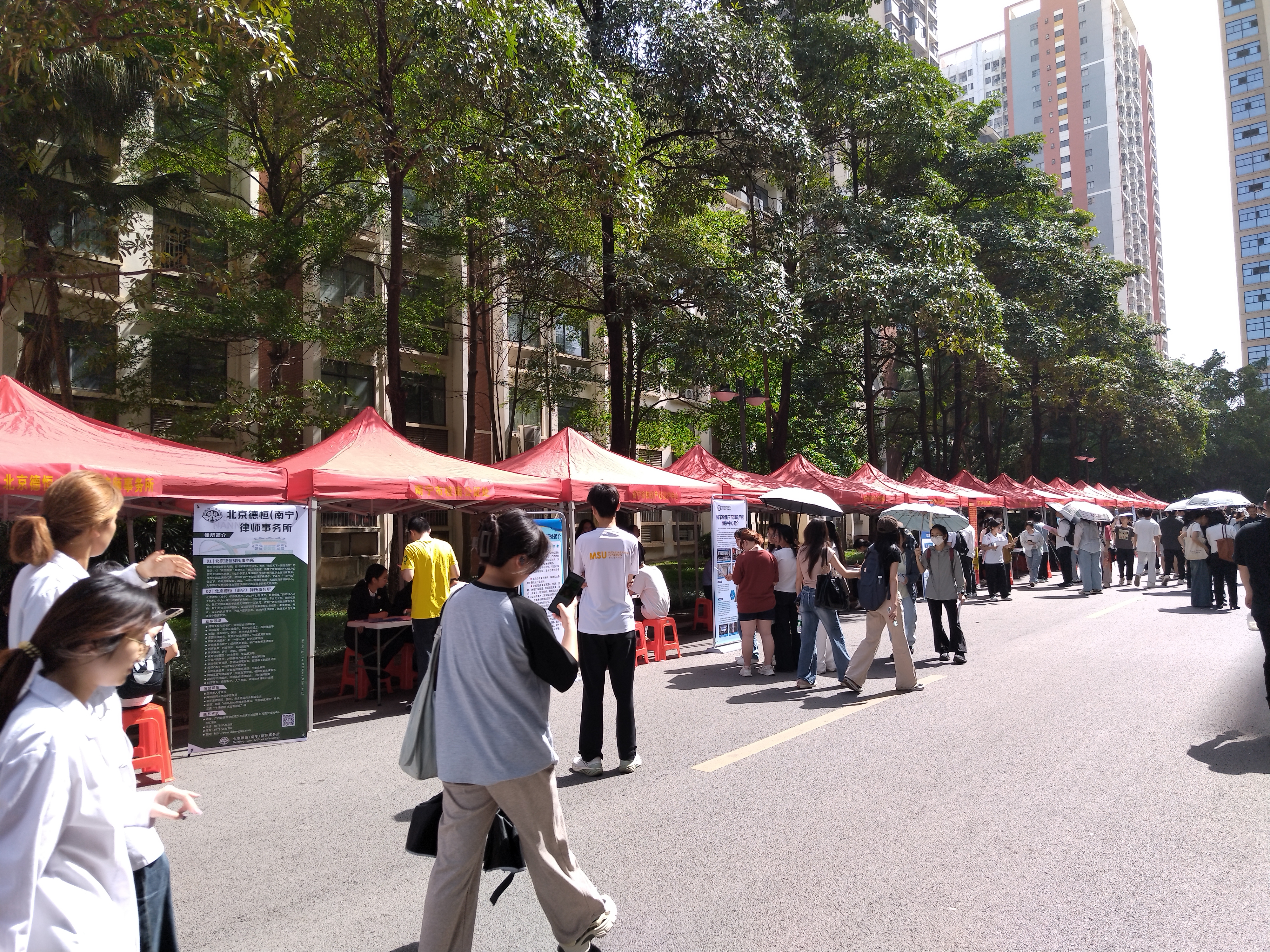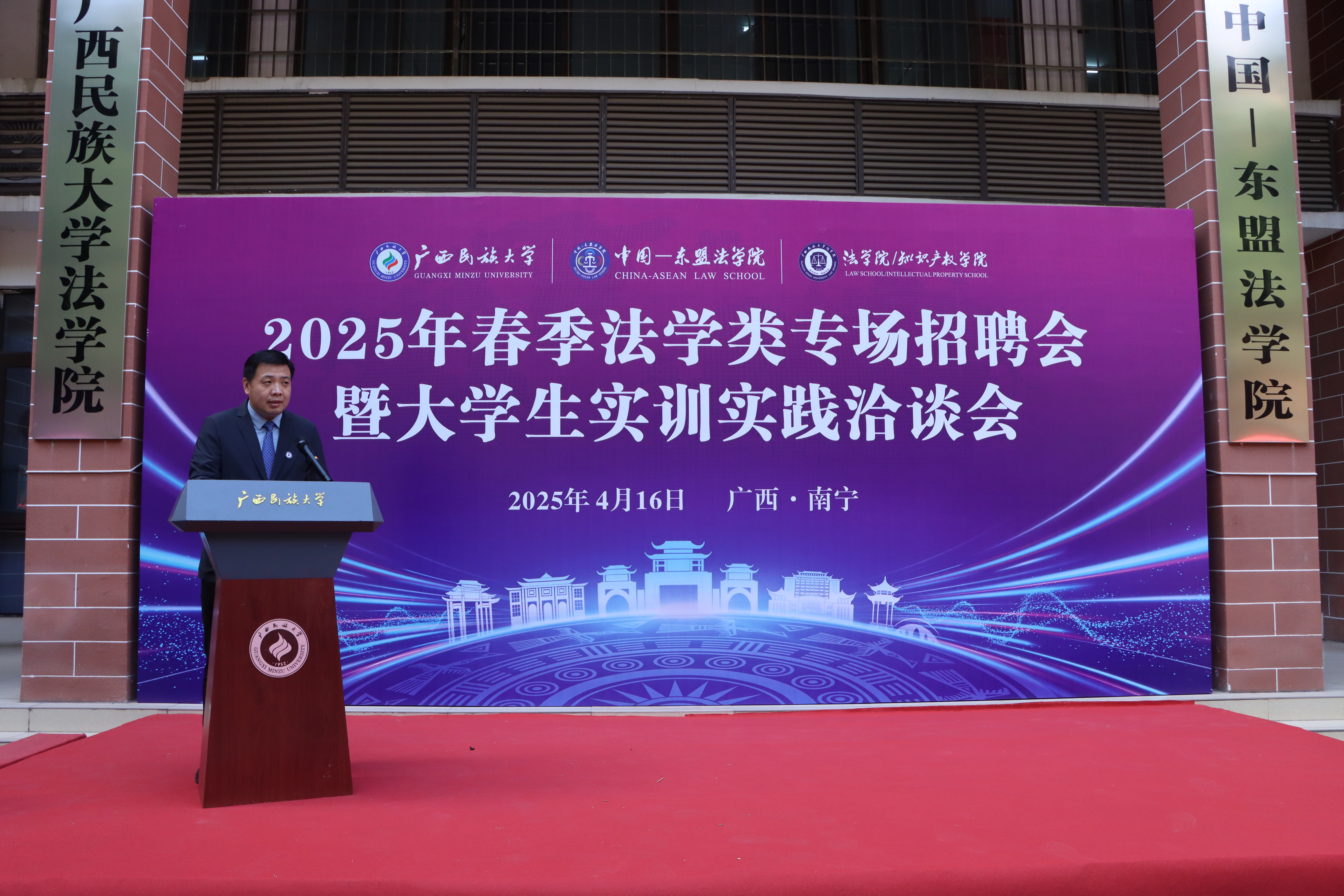 4月16日,广西民族大学best365中国官方网站2025年春季法学类专场招聘会暨大学生实训实践洽谈会在思源湖校区尚法楼前举行启动式,共有来自区内外80余家单位提供1000多个就业岗位和实习实训岗位,涵盖政法部门、法律服务机构、企业等用人单位,吸引校内外2000多名学生参加。