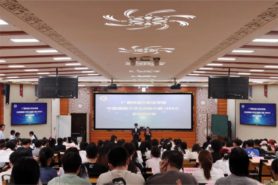 4月19日晚,法学院中国国际大学生创新大赛(2024)院级选拔赛于学友楼105举行。大赛邀请南宁师范大学创新创业学院副院长,广西高校创新创业教育研究中心副主任,中国国际“互联网+”大学生创新创业大赛国赛评委韦良、艾思咨询创始人,中国国际“互联网+”大学生创新创业大赛国赛评委农宗灵、北部湾控股有限公司(香港)董事长,全国大学生电子商务‘创新、创意及创业’挑战赛”国赛评委严茂军、广西民族大学国际教育学院党委副书记肖海芹、广西民族大学传媒学院教师黄杨皓担任本次大赛评委,法学院党委副书记玉琳、辅导员曹俊参加本次活动。
