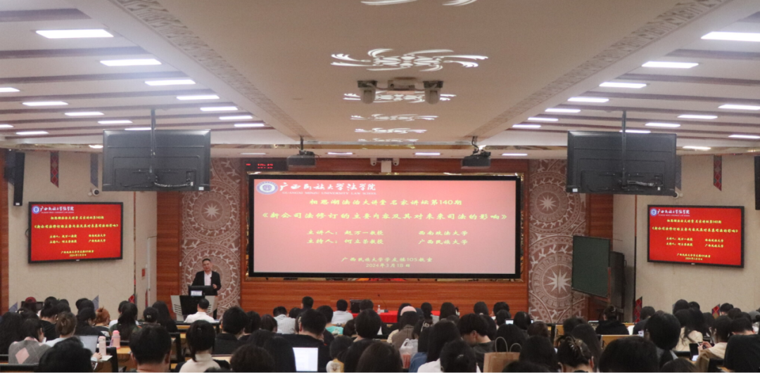 本次讲座是相思湖法治大讲堂系列讲座之一,赵万一教授以其广阔的视野、深厚的法学功底、严密的思维逻辑对新公司法的修订作了精湛的分析与总结,使与会师生对于新公司法的制度设计等相关问题有了更加深入的认识。本次讲座的成功举办,有助于让同学们关注到社会经济发展的前沿问题,同时也是best365着力打造“民大法学”品牌,加快法学一流学科建设的重要举措。(初审:马玉婕 复审:康佳威 终审:彭振)