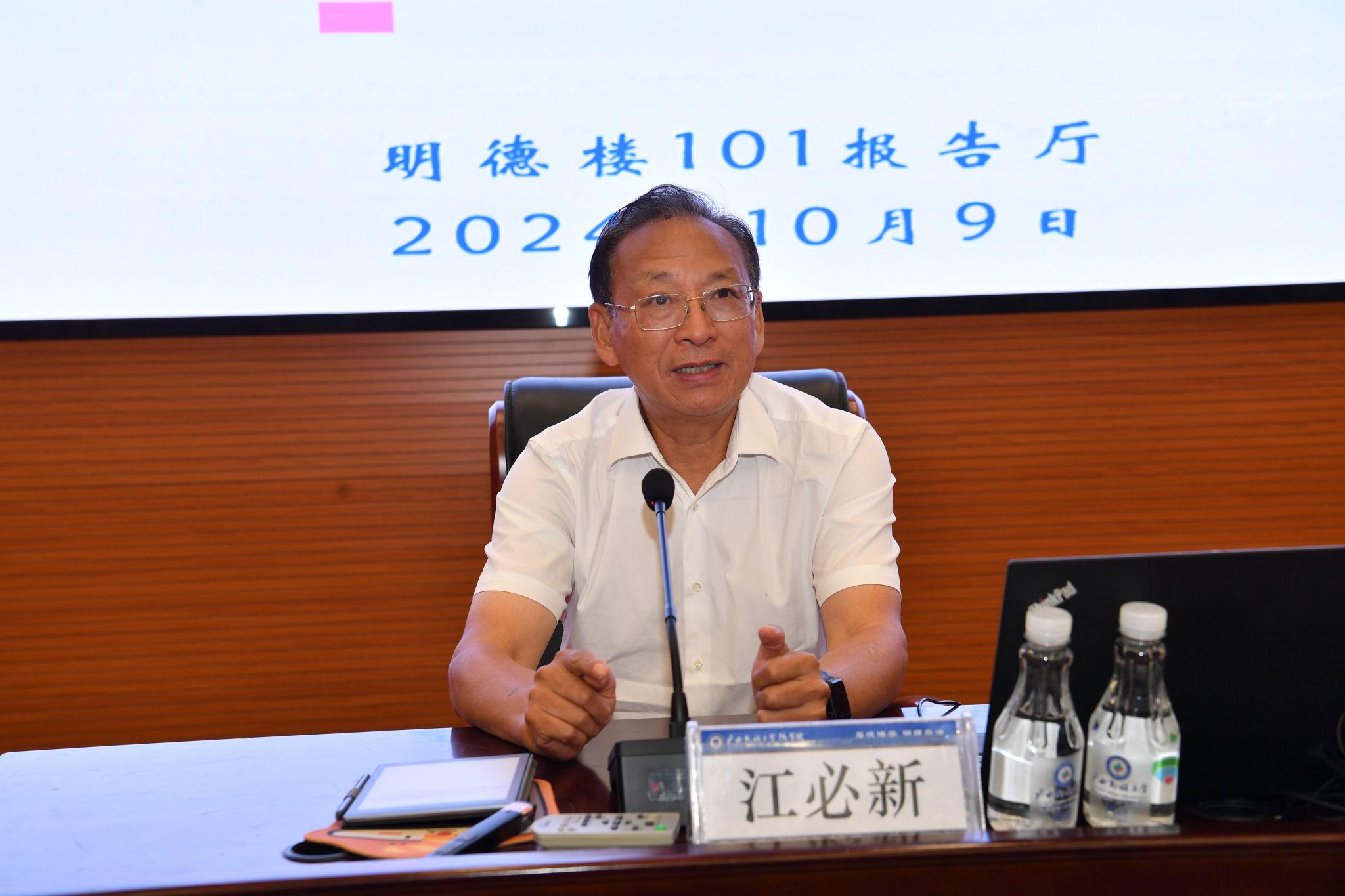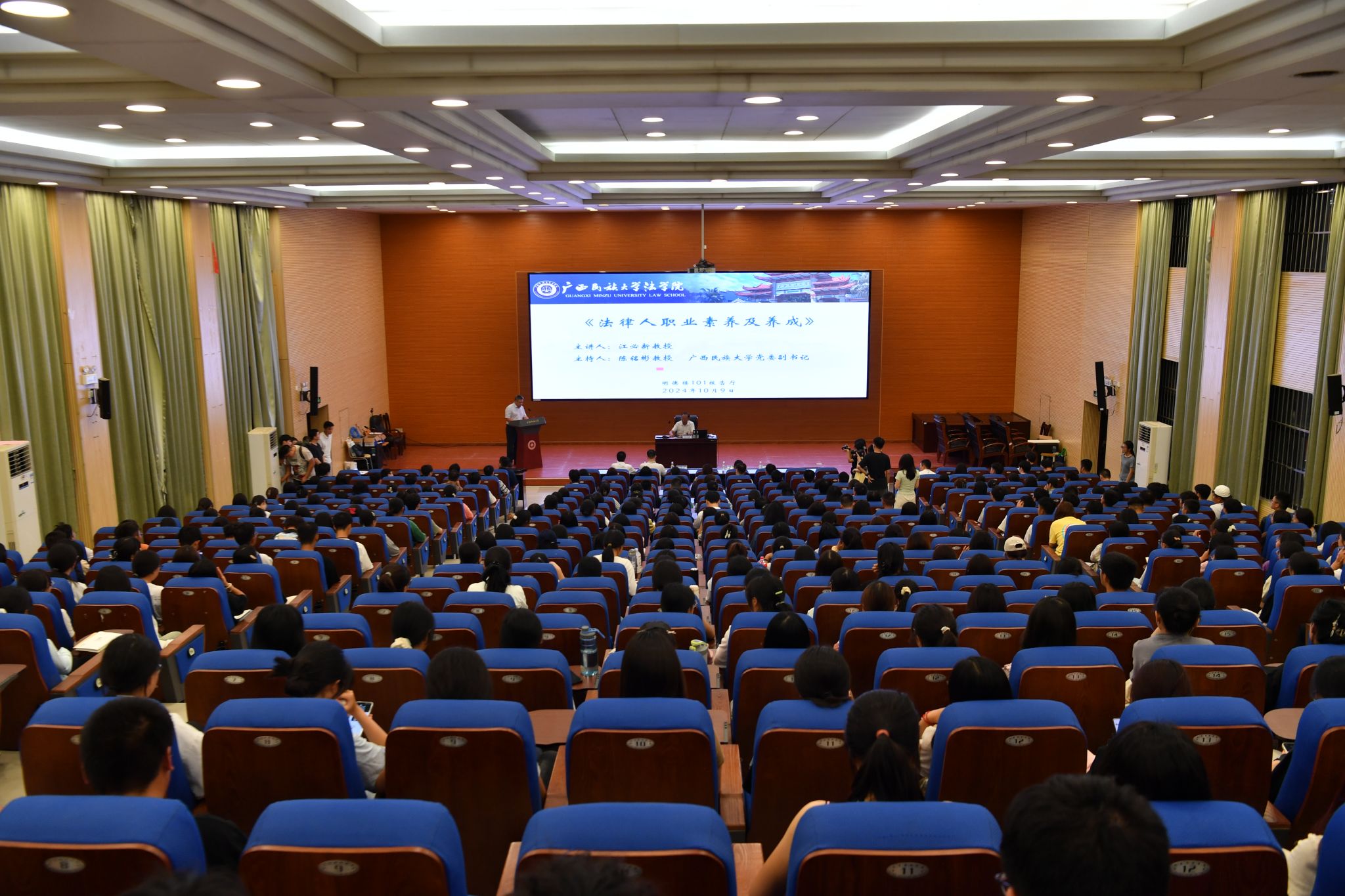 10月9日晚,“法律人职业素养及养成”主题讲座在广西民族大学思源湖校区明德楼101报告厅举行。本次讲座由第十三届全国人民代表大会宪法和法律委员会副主任委员、中国法学会副会长、最高人民法院党组原副书记、原副院长江必新教授主讲。学校党委书记卞成林会前会见了江必新教授。学校党委副书记陈铭彬主持讲座。