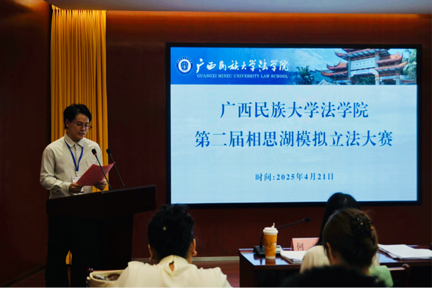 2025年4月21日,法学院第二届“相思湖”模拟立法大赛复赛于良庆区人大“国字号”基层立法联系点举办。本届大赛以“聚焦地方特色,探索立法创新”为主题,通过模拟地方立法实践,搭建起法学教育与地方治理深度融合的实践平台。大赛由法学院彭振教授、鲁学武副教授及博士生何露担任评委,各年级研究生代表到场观摩。