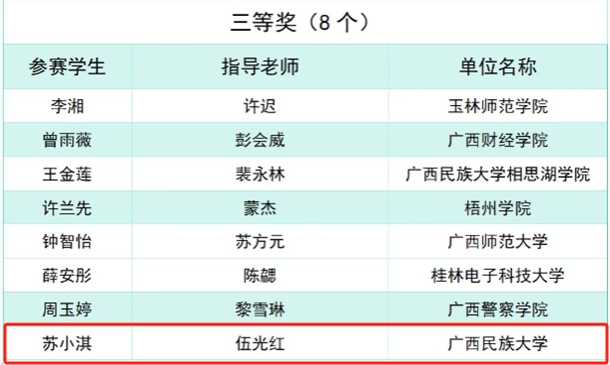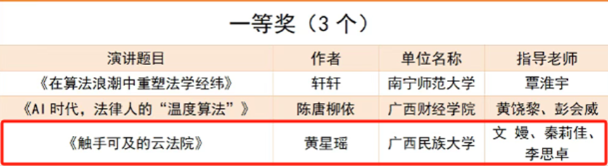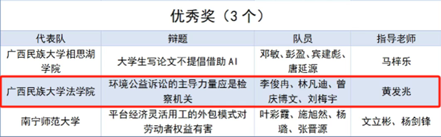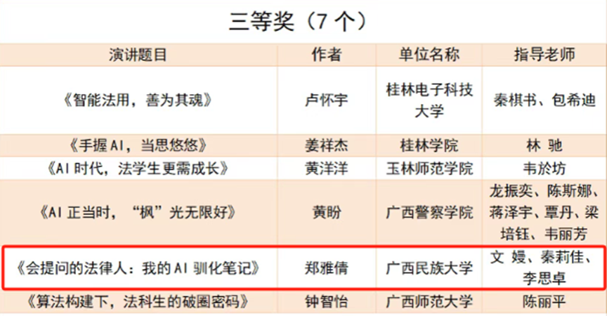 【简讯】5月10日,广西高校第七届“八桂法声”法学专业辩论赛、广西高校第四届“八桂法声”法学专业演讲比赛和广西高校第三届法律文书写作竞赛在广西警察学院开赛,best365师生组队参赛并取得演讲比赛一等奖、三等奖,法律文书写作技能比赛三等奖、优秀奖,辩论赛优秀奖的优异成绩。(通讯员:指导老师秦莉佳、李思卓、崔璀、黄发兆)